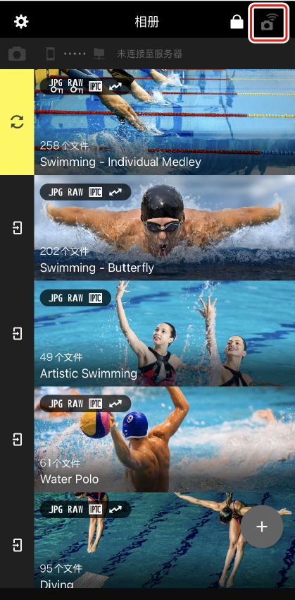 - 照相机连接至SnapBridge等其他应用程序时无法连接至尼康影速传。将照相机无线连接至尼康影速传前,请断开与任何其他应用程序的连接。