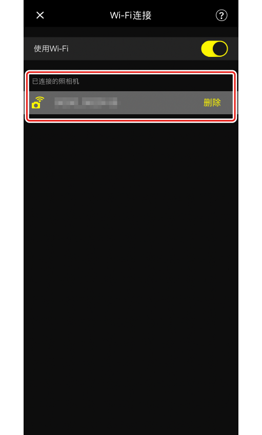 - 轻触[已连接的照相机]中的[删除]可断开照相机的连接并将其从[可连接的照相机]和[已保存的照相机]中删除。