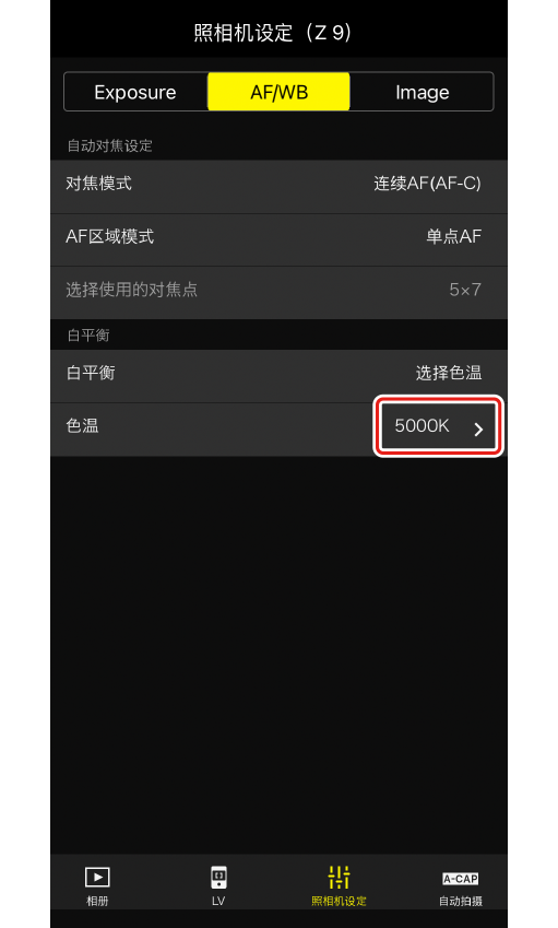 - [AF/WB]:配置与自动对焦和白平衡相关的设定。