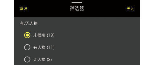 - 轻触[重设]将所有筛选条件重设为[未指定]。