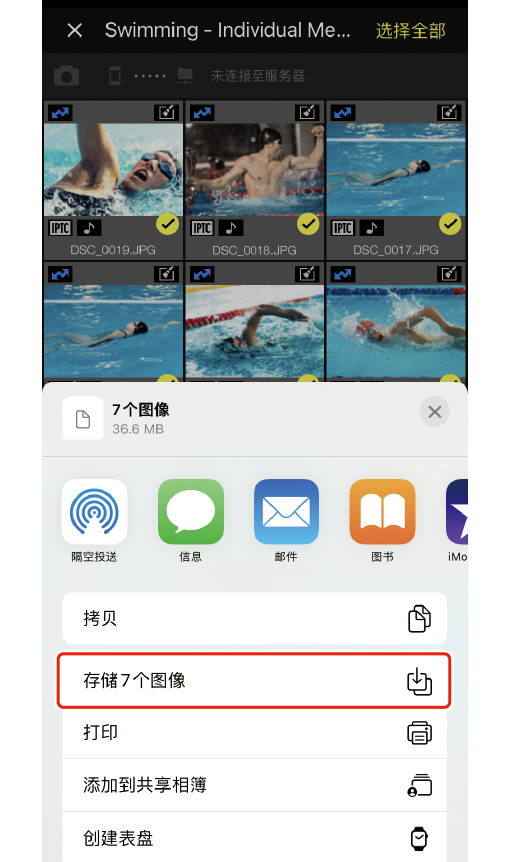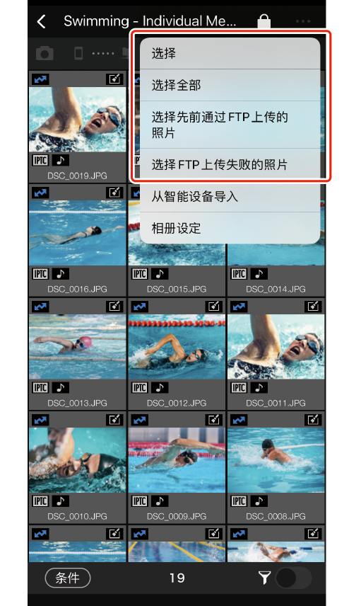 若要选择已上传至FTP服务器的所有照片,请在图库视图中轻触
