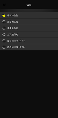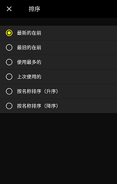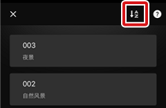 轻触[我的收藏]以在照相机设定列表的顶部显示所选的设定库。